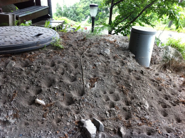 隣の家の床下(傾斜地のため背が建てるくらいある)を