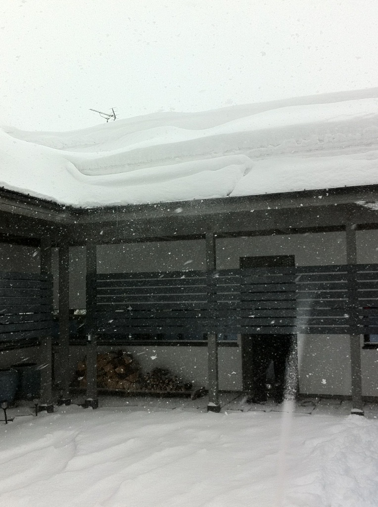 2つの屋根の雪が合わさってすごく多く見えるのです。